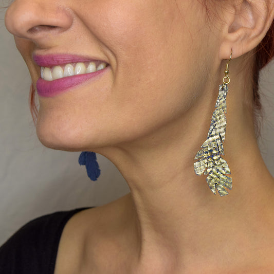 Metallic Feather Leather Earrings- Blue/GoldRegular price $44.00 USDRegular priceUnit price / per-