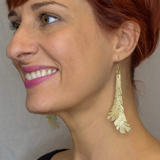 Metallic Feather Leather Earrings- Gold "Shorties"Regular price $39.00 USDRegular priceUnit price / per-