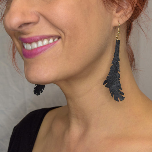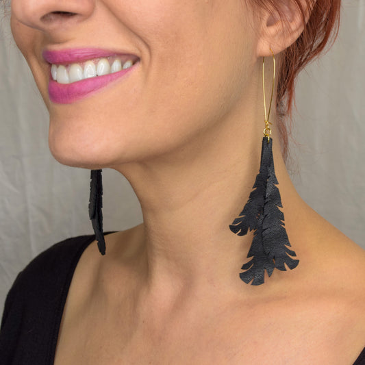 Sold outFeather Leather Earrings- Black