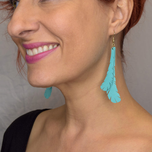 Sold outFeather Leather Earrings- Turquoise